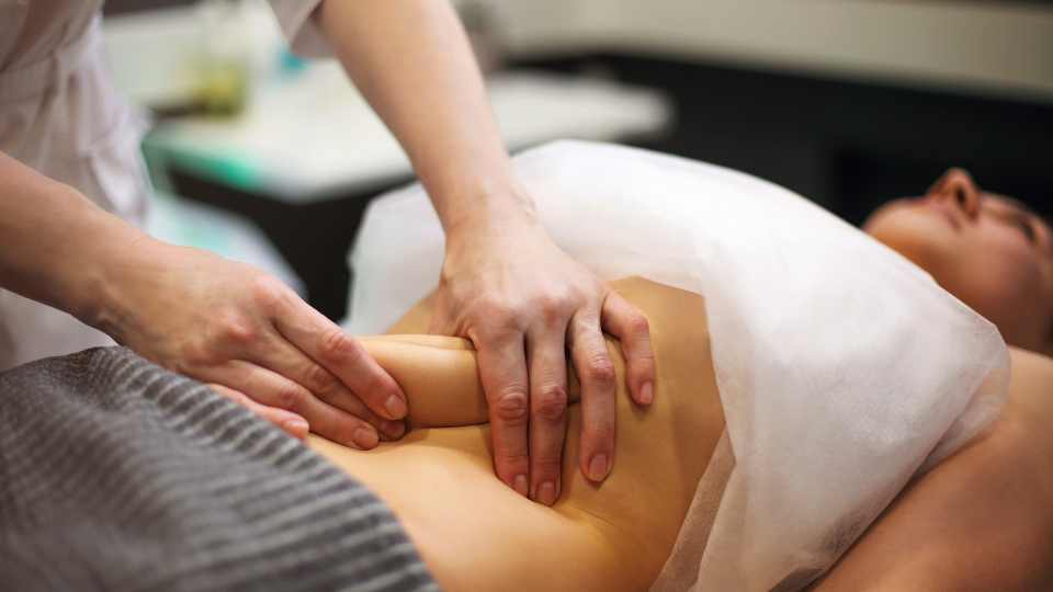 Técnica de masaje mecánico con vacío y rodillos para mejorar la circulación y reducir la celulitis.